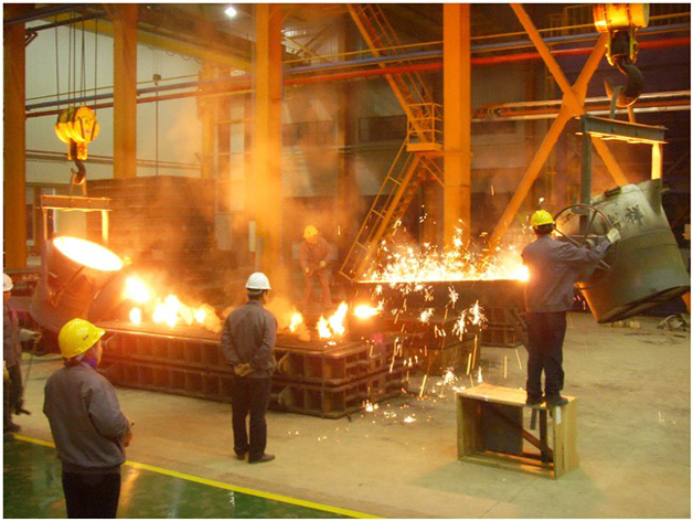 12月20日下午1点08分,通能精机中小件铸造厂房内,随着一声开始出水,当班熔炼值班长陈富敏拔动炉台上的操作台操作杆,电炉炉盖平稳打开,炉体靠气缸缓慢撑起倾斜,当炉体内已熔化的铁水倾倒入铁水包内,顿时铁花飞溅,似金花飞舞,随着众人的注目及掌声,标志了通能精机中小件铸造电炉出铁水调试成功。 自南通机床厂创建以来,铸造生产一直是采用冲天炉熔炼浇注,随着时代的变迁、科学的进步、企业的发展,新通能规划采用了具有世界先进水平的德国ABP公司生产的感应电炉,这种设备对材料加热效率高、速度快,低耗节能环保,且具有数字智能化,用电脑来操控,熔炼方式为一控二炉的“一拖二”形式。经过供应商反复调控之后,于18日筑炉,19日烧结炉,20日出铁水,验证设备的功效。20日当天试出铁水的是1号东2炉,每炉8吨铁水。当第一炉的铁水倒入的第一包铁水出水温度测出为1516℃,符合出水要求,然后以1356℃的浇注温度浇注通能重型装配厂房使用的重达1吨的基础槽铁,铁水浇注过程稳定、无异常,最终,当天以3炉12包铁水完成了中频感应电炉最后一步调试工作。公司总经理沈春华,公司副总、通能精机董事长、总经理陈志祥等相关领导到现场观看了感应电炉烧结调试阶段出铁水过程。 随后,通能精机陈总召集现场操作的技术质量、造型、熔炼、浇注等相关人员进行了电炉调试之后的总结分析会,并修正和规范了熔炼、浇注的操作要求和注意事项。(南通科技陈辉珉供稿)