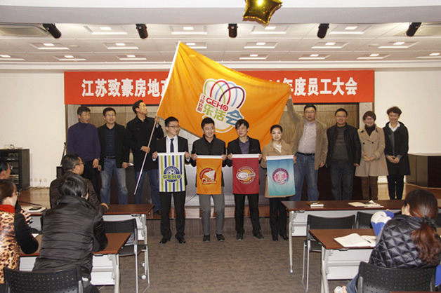2月27日,江苏致豪房地产开发有限公司举行企业文化建设启动暨乐活会成立授旗仪式。公司全体员工参加启动仪式。冯旭辉总经理宣布企业文化建设正式启动,邱衡副总经理通报企业文化建设实施方案。 2014年是该公司的“企业文化建设推进年”,将以建立“五型”企业为模式( 价值文化、制度文化、行为文化、团队文化、学习文化),“点燃激情,共创辉煌”为主题,以建立高效能的团队为目的,推动企业软实力的提升。