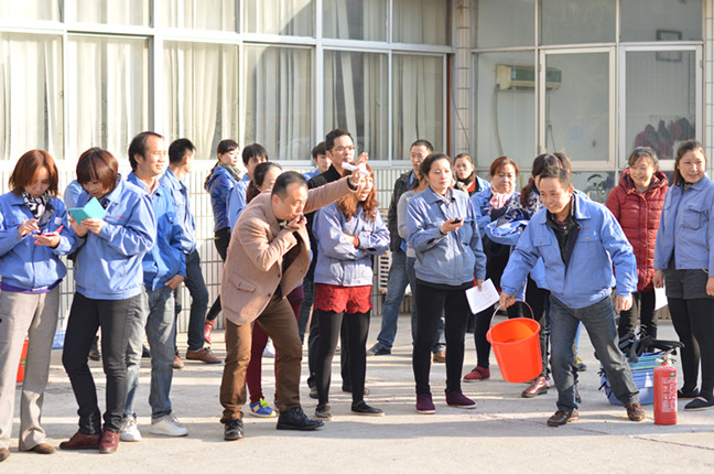 12月6日下午 ,随着毛明辉副总经理的一声哨响,一场别开生面的消防运动会在南通海盟服装有限公司火热开赛。该运动会是南通海盟服装有限公司组织的第五届消防运动会,来自公司的9支代表队在提水桶、搬运塑料篓及衣架、搬运灭火器、迅速火盆灭火联手接力赛项目上展开比拼。