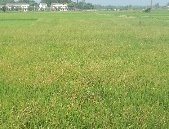 稗草危害的田块                                                           (千金子危害的田块)