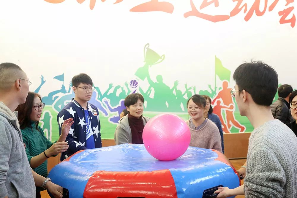 全体运动员的第五套广播体操将活动的气氛推向了高潮。定点投篮、旱地龙舟、众星捧月、龟兔赛跑、袋鼠运瓜、财源滚滚、呼啦圈过山车、瞎子敲锣、赶“猪”跑、拔河等项目既有一定的运动强度,又不失趣味性,活动中,观众的呐喊助威声、加油声此起彼伏,运动员们也都拼尽全力。