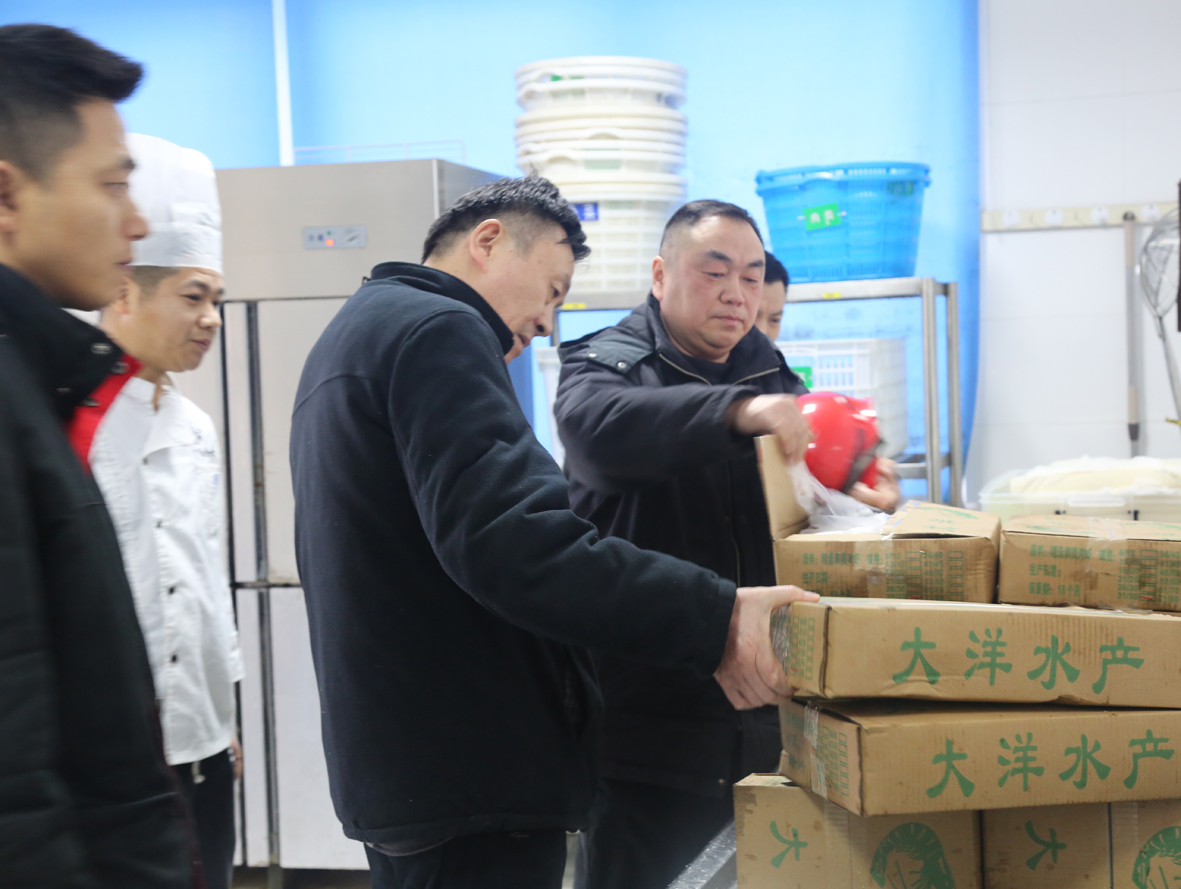 薛总首先检查了食堂春节期间食品准备和食堂安全工作。要求后勤进一步完善节日期间菜品,让员工节日期间在公司加班过得舒心,过个稳定、和谐的新年。
