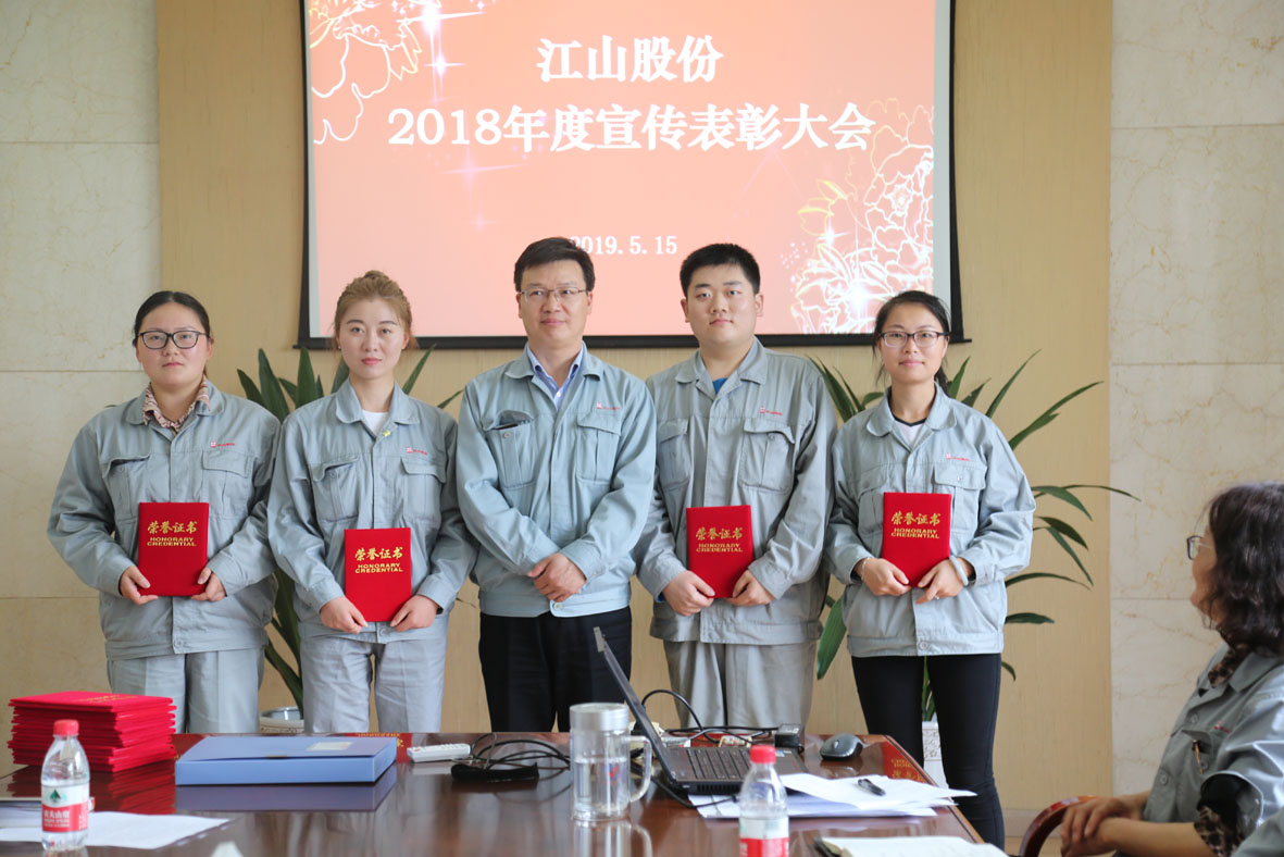 江山股份综合管理部党群总监张琴对2018年度宣传工作作了总结,并对2019年度宣传工作进行部署。2019年公司宣传工作要在发挥好《江山股份》报等宣传平台作用的基础上,进一步发挥新媒体平台作用,实施微信公众号、网站升级,提高新媒体宣传的深度和广度,使工作更贴近公司重点中心工作,充分发挥宣传工作树形象展风采、宣传重点中心工作、聚焦员工关注、记录重大事件的功能。2019年度公司宣传重点工作:1、开展庆祝建国70周年“我与江山共成长” 主题征文和“出彩江山人”文艺汇演等系列宣传活动。2、对公司的战略重点事项和重大事件进行留痕拍摄记录。3、加强主题性约稿工作的力度。把生产管理、先进人物和事迹、基层一线中的闪光点用鲜活的文字表现出来,更好的助力公司中心工作。会议明确了年度优秀作品的评比办法以及微信制作团队的建设的要求。会上,江山股份首次推出了年度优秀作品评选,2018年度张海波、许李娟、赵蕾3人获得“银笔奖”。