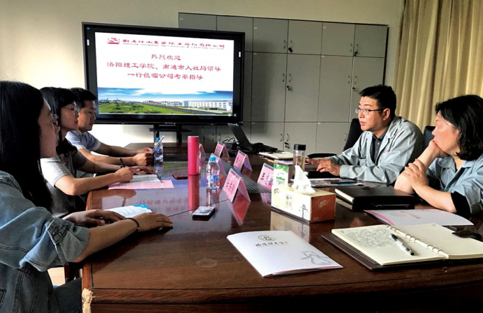 5月21日下午,洛阳理工学院环境工程与化学学院党委书记王莉、南通市人才服务中心关龙志一行数人前来南通江山农药化工股份有限公司进行考察访问。江山股份党委副书记、工会主席樊文新,公司HR总监王志敏等参加了接待。