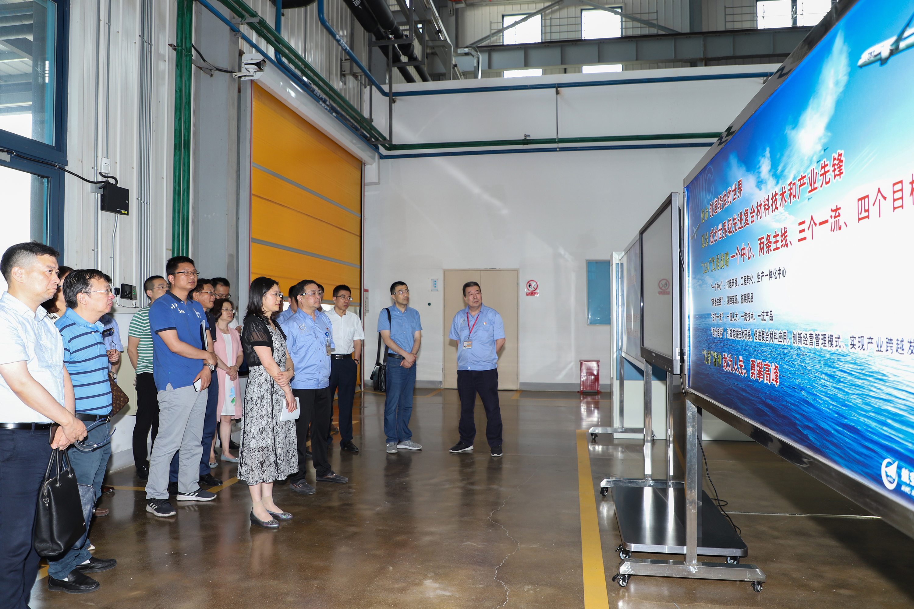 与会人员首先走进公司生产一线,参观了大尺寸纸蜂窝生产线、复合材料预浸料生产线和智能装备制造生产线,观看了公司宣传片。