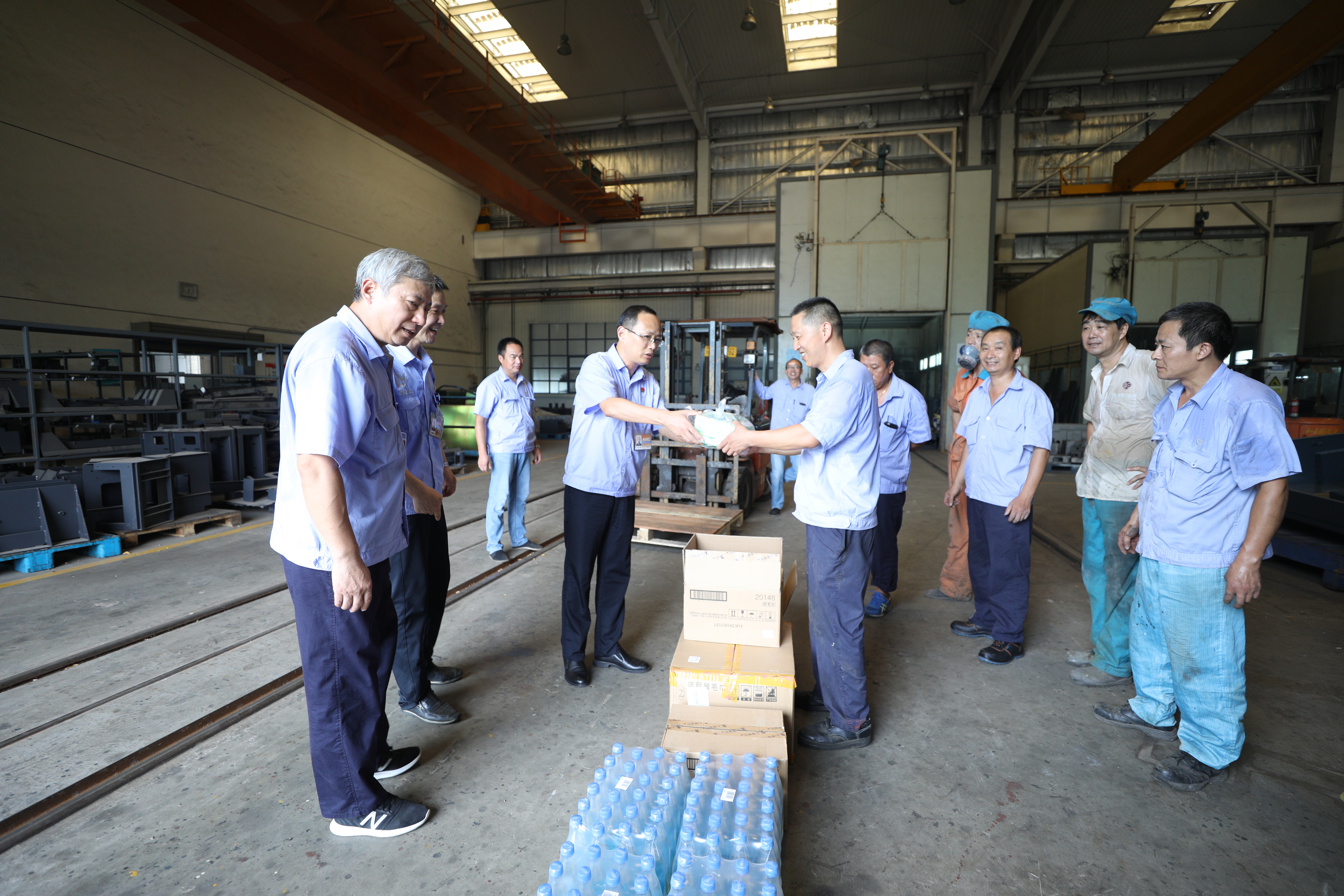 7月30日,中航航空高科技股份有限公司工会主席沈锋带队到南通机床、航智装备以及通能园区现场开展送清凉活动。为一线员工送上清凉饮料、毛巾、防暑药品等清凉物资,将丝丝“清凉”和浓浓情意一起送到了一线员工的手中、心中。