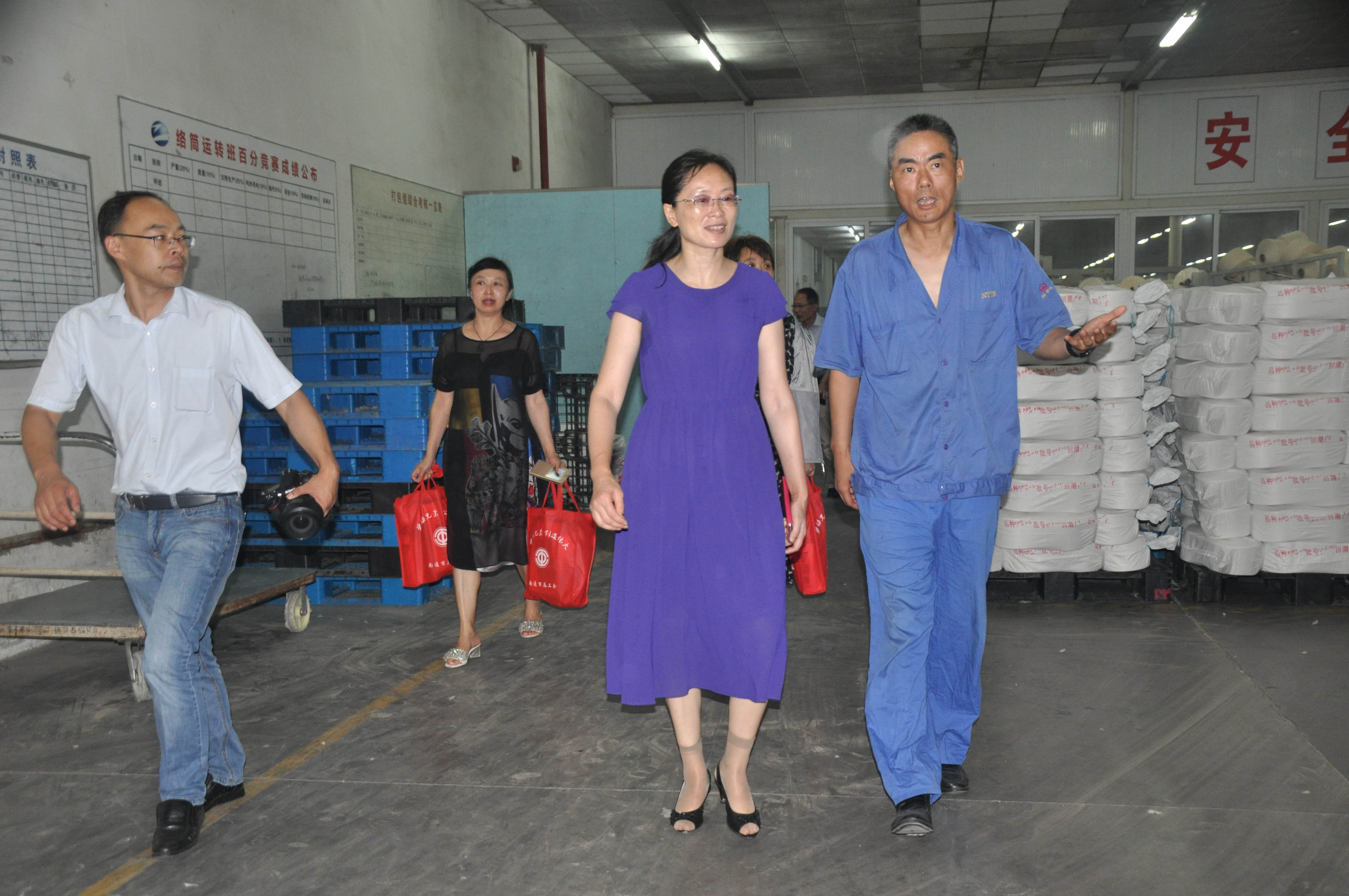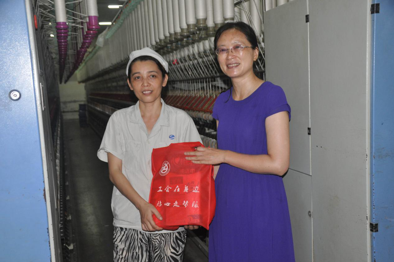 炎炎夏日,酷暑难挡,在高温下坚守奋斗的劳动者牵动人心。2019年7月29日上午,市总工会副主席黄燕带领市总工会相关同志,来到南通纺织控股集团纺织染有限公司,开展夏季慰问活动,为纺织染公司一线员工送去了180份夏令消暑用品。