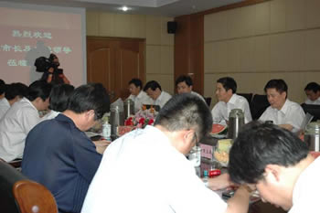 6月6日上午,陈照东董事长主持召开公司营运发展专题汇报会,陈金明总经理代表领导班子向常务副市长蓝绍敏及市有关部门领导作了专题汇报。陈总简要介绍了公司概况、发展思路、保障体系等方面情况,并提出需政府协调解决的几个问题。