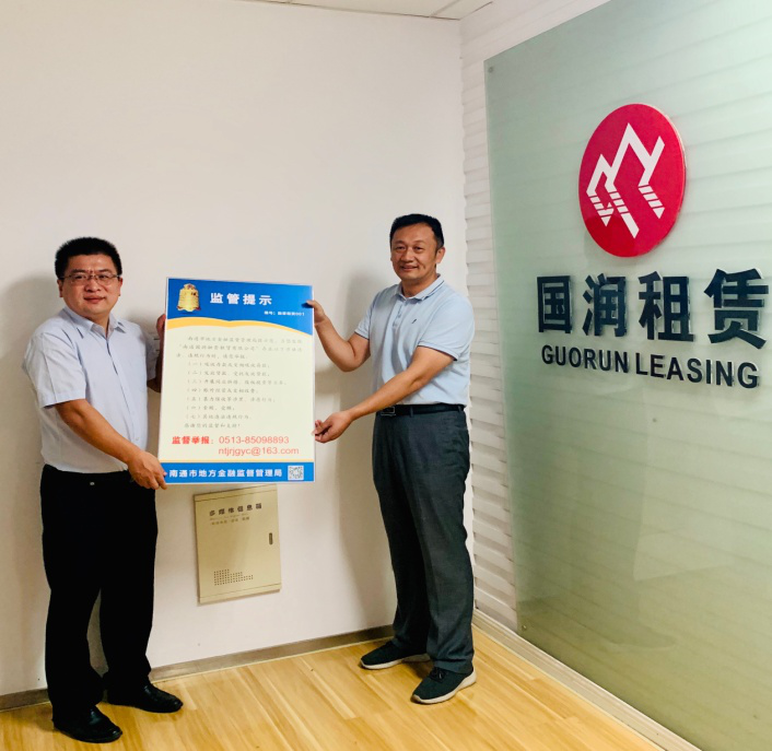 国润租赁公司喜获南通市金融监管局001号监管提示牌