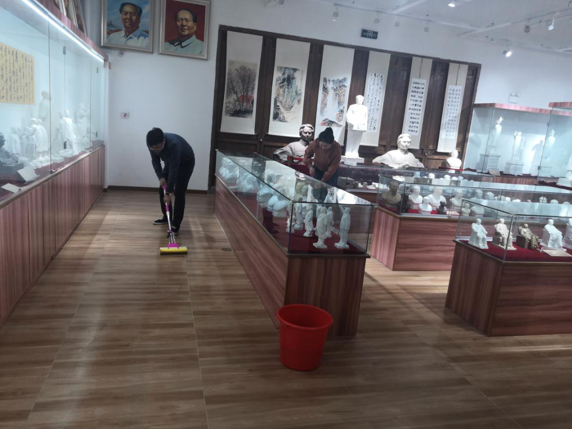 塑像纪念馆面积600平方米,藏品达6500件,由馆主沈爱国老夫妻俩管理。他们每天都要接待前来参观学习的党员群众,近期不少单位在此开展主题活动,他们俩就更忙了,每天仅打扫卫生就很不容易。国盛环境党支部了解这一情况后,主动组织党员带着拖把、水桶、抹布等到塑像馆开展志愿服务。党员们有的打水,有的拖地,有的擦拭玻璃展柜,大家行动迅速、认真细致、井然有序。国盛环境党支部也与沈爱国老人约定,今后馆里有什么困难,可以随时联系国盛环境党支部帮助解决。