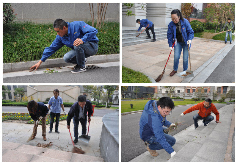 活动现场,在本部党支部组织委员王建兴分配下,16名党员、1名预备党员、2名入党积极分子,被分为6组,分别负责园区内6幢建筑一层及建筑周边落叶、杂草的清理。分配完后,党员志愿者们手持扫帚,簸箕和垃圾袋,来到指定建筑前,不怕脏、不怕累,清扫建筑一层及附近的落叶、杂物,并拔除石阶上的杂草。用实际行动为打造美丽园区形象贡献自己的一份力量。