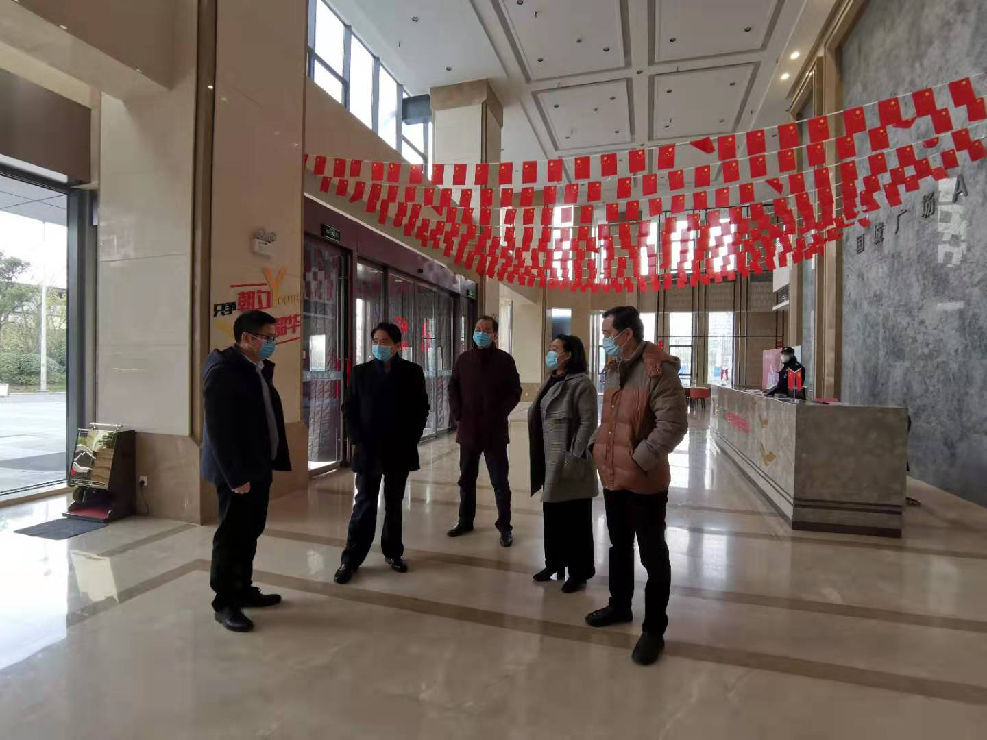 2月5日一大早,南通产业控股集团党委书记、董事长杜永朝带队一行人现场检查南通国城投资发展有限公司防控疫情工作情况。