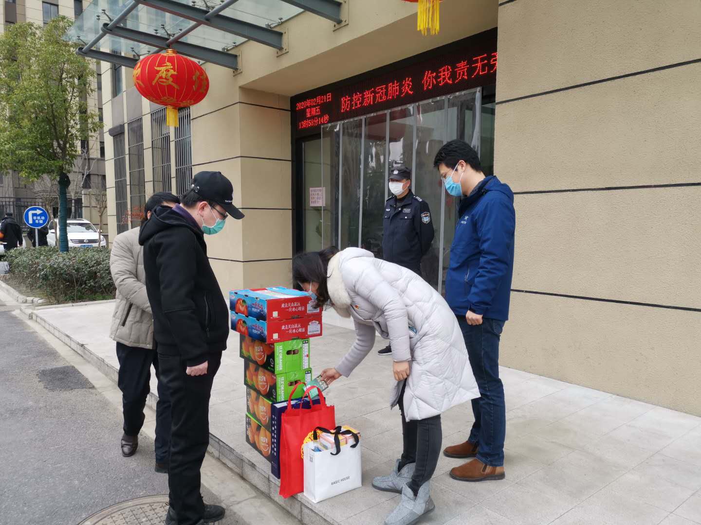 在这次慰问活动中,投资公司党支部12名党员自发筹集了口罩、消毒液等防疫物资以及水果等慰问物品,感谢文峰街道办一线工作人员在这次疫情中所作的贡献和帮助,希望他们在全身心投入高强度工作的同时,也要做好自我防护,确保身体健康。文峰街道办工作人员也真诚地表达了谢意,并和我司党员代表互相交流勉励,共同打赢疫情防控阻击战。