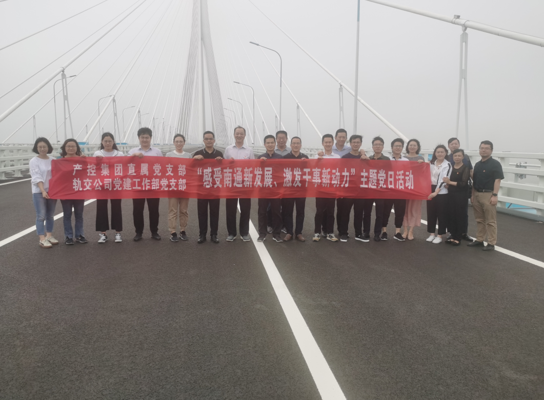 在江海大道地铁施工站,轨交公司党委副书记石星恺在带领参观的同时向党员们介绍了地铁站最新施工进展。目前,江海大道地铁施工站点已完成车站主体结构及站内除轨排井外的所有二次结构工程的施工,预计今年年底车站将完成所有附属结构工程90%以上的工作内容。 结束了江海大道地铁施工站的参观,全体党员乘车前往沪苏通长江大桥。据施工方介绍,沪苏通长江大桥项目是国家中长期铁路网规划“八纵八横”高铁网中沿海通道的重要组成部分,是南通三大转型中交通转型的标志性工程,全长11072米,采用主跨1092米的钢桁梁斜拉桥结构,为世界上最大跨径的公铁两用斜拉桥,也是世界上首座超过千米跨度的公铁两用桥梁。大桥通车后,南通至上海铁路出行最短时间,将从现在的4小时左右压缩至1.5小时左右,对增强上海中心城市辐射带动作用、推动长三角向更高质量一体化发展等具有重要意义。