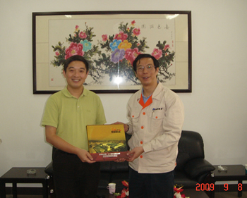 昆明机床总经理张晓毅向陈董事长赠送厂庆纪念品 |