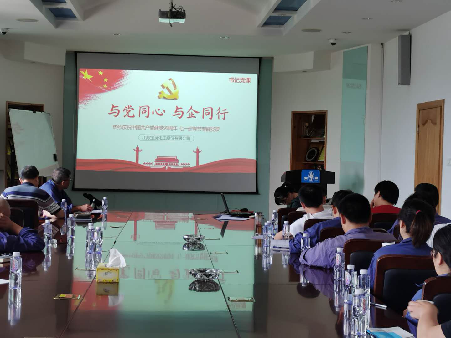 今年上半年,上级党组织倡导我们要在基层党组织和党员中积极开展新时代南通“发展四问”大讨论、“党旗飘在一线、堡垒筑在一线、党员冲在一线”突击行动、“5·10”思廉日等主题活动。围绕上面的几个重点学习活动,在7月1日适逢党的99周年生日之季,宝灵化工党委在公司三楼大会议室,举办了一堂“学党史 · 抗疫情· 讲廉洁”主题的书记党课,由公司党委书记秦启良同志主讲,公司全体党员及入党积极分子参加。