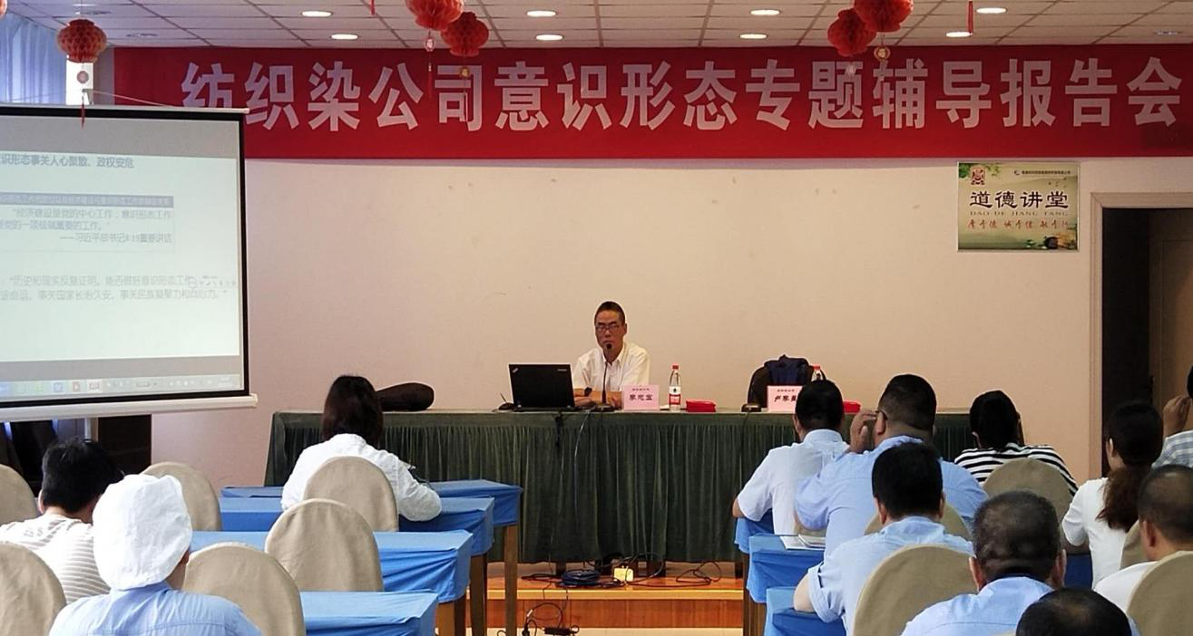 按照上级党组织精神,为进一步加强公司意识形态工作,提升全体党员、干部意识形态能力,7月3日下午,南通纺织控股集团纺织染有限公司党委书记、董事长李志宏就《如何提升党员、领导干部意识形态能力》,对全体党员、中层管理人员做了专题党课辅导。