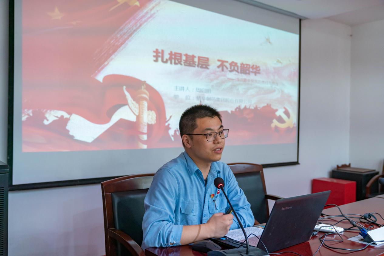会议首先由市优秀共产党员、精华制药职工周启明讲述的《扎根基层 不负韶华》微党课开篇,他讲述了自己和企业在2020年的春天这个特殊的时期,挥洒汗水,服务大局,比拼奉献的难忘经历。通过他真情的讲述,让在场同志真切感受到了我国制度的优越性,体会到了青年党员在本次防疫“大考”中的责任与担当,接受了一场党性的洗礼。