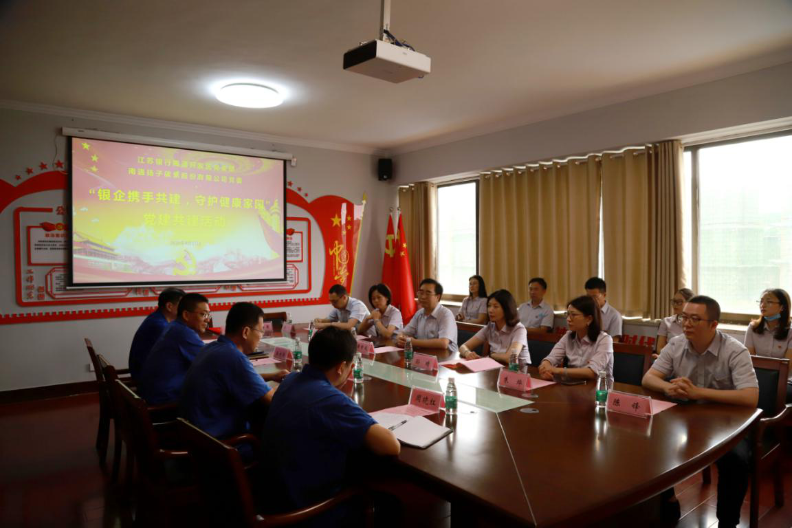 为丰富党建形式,提高党建工作水平,延伸工作平台,8月27日,江苏银行南通分行党委委员、副行长黄世成率江苏银行南通开发区党支部与南通扬子碳素股份有限公司党委开展“银企携手共建,守护健康家园”党建共建活动。扬子碳素党委书记、董事长刘明、党委委员、副总经理、财务总监王建华、党委委员、副总经理、工会主席周晓红、党委委员、纪委书记陆辉以及各党支部书记参加此次活动。