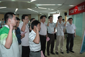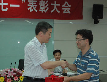 6月30日,集团党委召开纪念“七一”暨表彰大会,集团领导班子成员、所属各基层党组织负责人、优秀党员及优秀党务工作者代表70余人出席。 会上,集团党委授予南通科技党委、江山股份党委、石化总支、离休支部以及产控直属支部“五好”党组织称号,表彰了钱永康等47名优秀党员和陶坤山等23名优秀党务工作者。 南通科技党委代表“五好”党组织做了《紧扣中心服务大局、凝心聚力发挥作用》的交流发言,优秀党务工作者及优秀党员代表也结合各自实际,介绍了围绕经济工作、创新开展党建工作的经验和坚定信念、立足本职、争当优秀党员的先进事迹。 集团党委书记、董事长陈照东代表党委作报告。他总结了2009年党建工作,通报了今年上半年集团经济运行和主要工作情况,以“突出重点,全面完成年度目标任务”为题就下半年经济工作提出要求,以“开展创先争优”和“争做勤廉表率”为重点就下一阶段党建工作作出部署。 会议号召各级党组织和全体党员抓住经济复苏机遇,将党建工作与经济工作紧密结合,抓好基层组织和党员队伍建设,加强党风廉政建设和监督保障工作,为完成全年目标、实现经济跨越发展而努力拼搏!