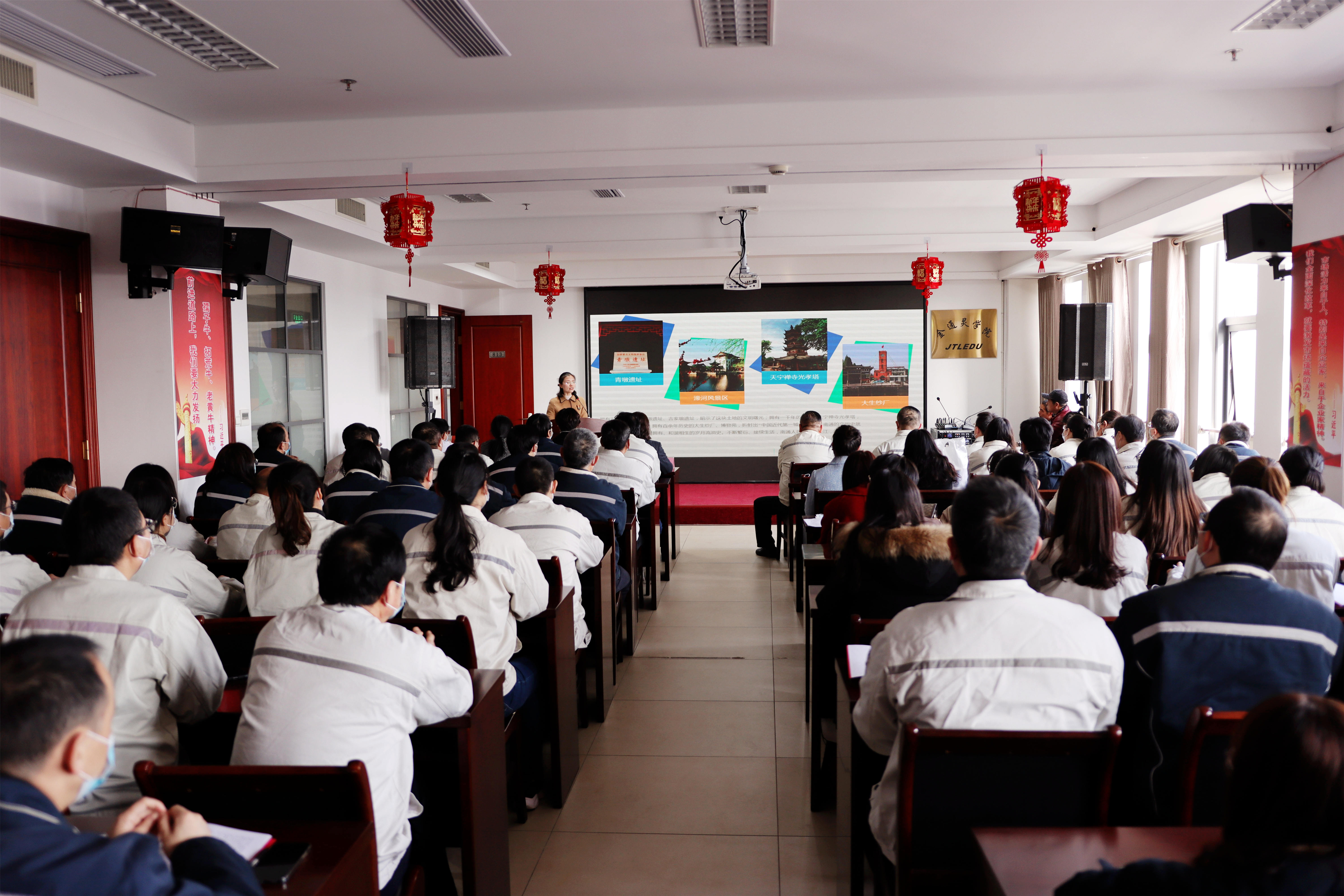 红色的灯笼带着节日的余温与暖心的“习语金句”一起装点着会场的氛围,台上宣讲员循循善诱,为金通灵职工带来满满理论“干货”;台下听众聚精会神,给宣讲员们送去阵阵掌声。2月23日下午,崇川区“学习贯彻习近平总书记视察江苏重要讲话精神”宣讲团首场宣讲活动在金通灵学院内成功举办。