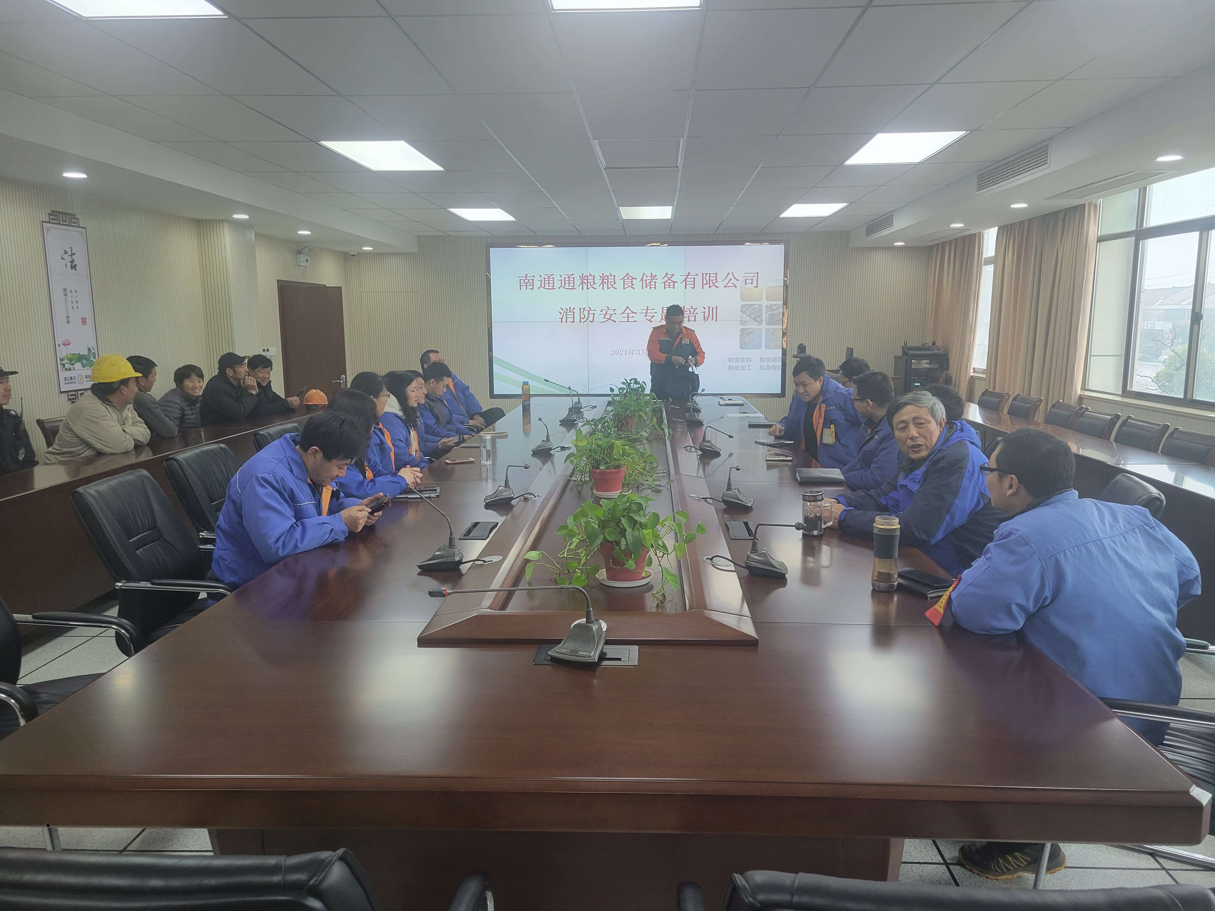 为加强公司消防安全,提高职工的防、灭火意识和发生火灾时的紧急应急能力, 3月11日上午,南通通粮粮食储备有限公司开展消防安全专题培训,公司全体在岗员工和外包作业工人参加了培训。
