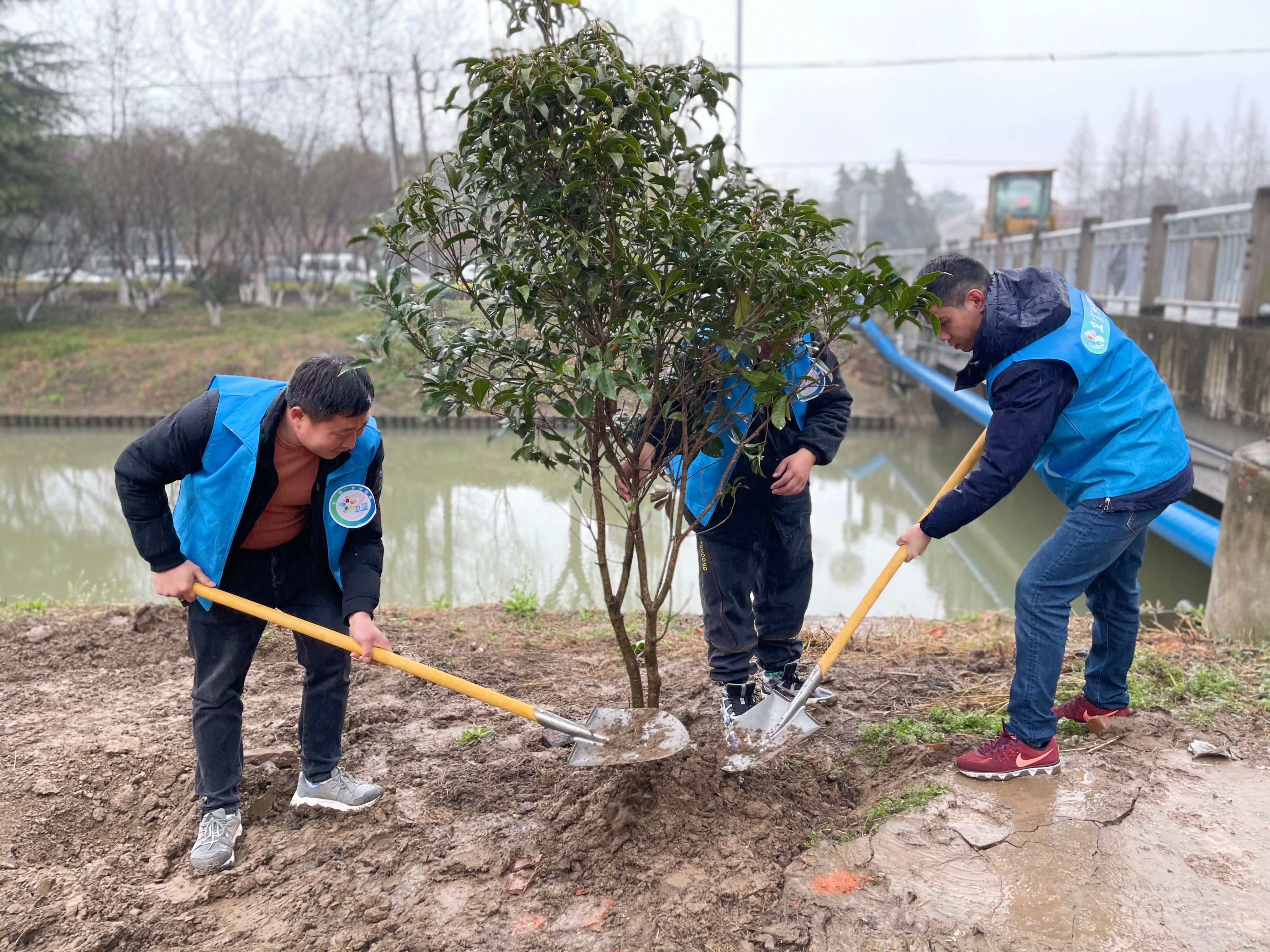 冒着春雨,身着蓝色志愿服装的志愿者组队骑行到各自认领的河段,用快闪的宣传形式呼吁:低碳生活,垃圾分类,健康出行。在此次活动中,50名志愿者分成五支队伍,分别认领辖区内20条主要河段,大家一边骑车一边在沿河风景带安插环保宣传牌,形成靓丽的“环保宣传风景线”。