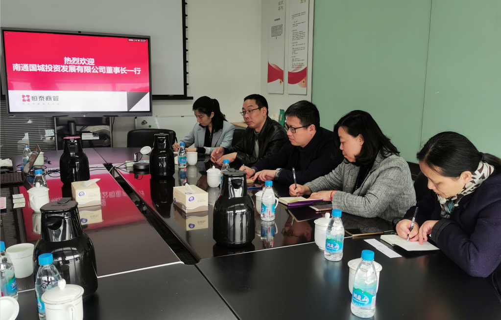 4月8日,国城投资党支部书记、董事长谢俊一行走访了苏州工业园区恒泰商业管理有限公司。恒泰商管公司总经理吴志唐等介绍了苏州恒泰集团及商管公司概况,并对园区商业项目开展情况做了简要讲解。随后,双方又一同探讨了南通项目的规划以及以公共交通为到导向的TOD项目发展。