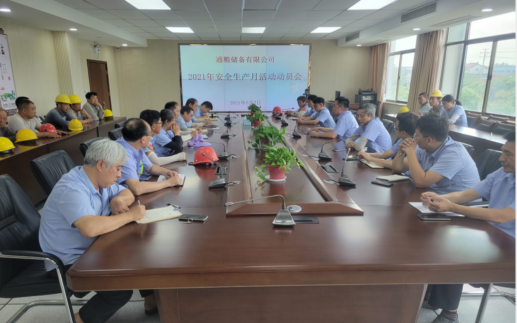 为全面贯彻习近平总书记关于安全生产的重要论述和党中央、国务院关于安全生产重大决策部署,按照《关于必赢3003no1线路检测中心组织开展2021年“安全生产月”活动的通知》文件要求,6月7日下午,南通通粮粮食储备有限公司紧扣“落实安全责任,推动安全发展”这一主题,召开“安全生产月”活动动员会,旨在进一步树牢安全发展理念,强化全员安全责任,推动公司安全生产工作上一个新台阶。全体在岗职工和外包工人参加此次动员会。