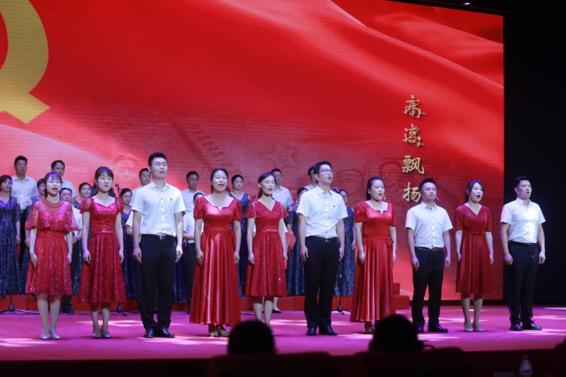 “没有共产党就没有新中国,没有共产党就没有新中国,共产党辛劳为民族,共产党他一心救中国……”演出在全场人员《没有共产党就没有新中国》的激情合唱中圆满结束。