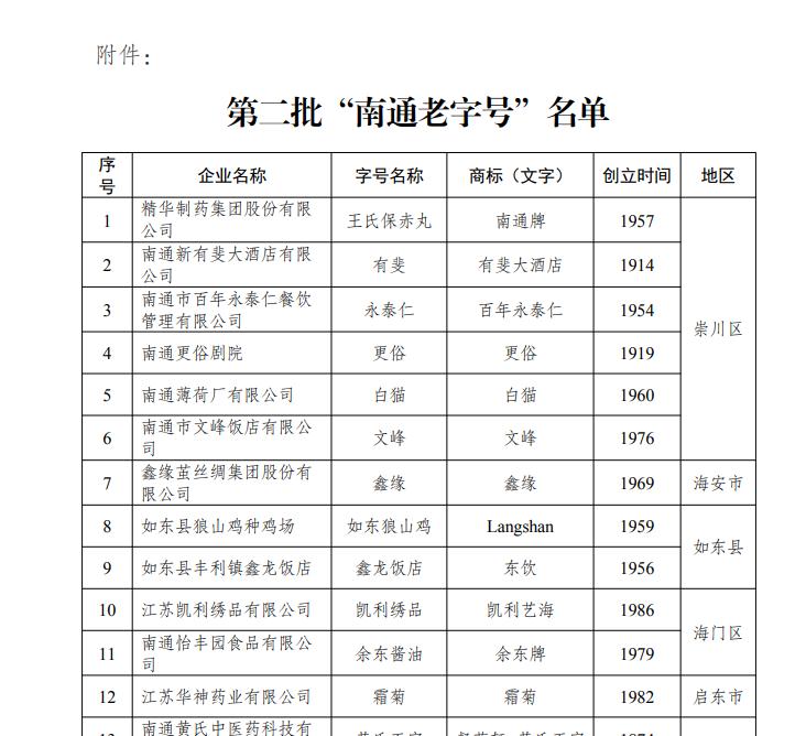 8月10日,南通市第二批老字号名单发布,精华制药生产的南通牌王氏保赤丸入列其中,这是继2019年集团季德胜牌入选首批南通老字号后,精华制药又一老字号。