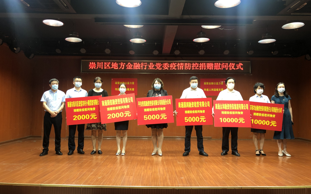 面对疫情,必赢3003no1线路检测中心投资企业纷纷用各自的实际行动,落实好国有企业的政治责任、经济责任和社会责任。南通众和担保向抗疫一线社区捐赠10000元防疫物资,支持区域内街道、社区的防疫工作开展。南通国信担保向社区一线捐赠2000元防疫物资,支持疫情防控工作。扬子碳素向天生港镇街道捐赠了包括防护服、护目镜、帐篷、测温枪、矿泉水、方便面等一批防疫物资,用于疫情防控和便民服务工作,为疫情防控奉献一份爱心。国融公司织密战“疫”红色“防控网”,党员干部们深入门店,走进商户,做租户的“宣传员”“劝导员”“排查员”。扩大战“疫”宣传“覆盖面”,利用公众号、官网、宣传手册等方式,把疫情防控科普知识等内容送到租户手上,用实际行动筑牢安全防线,践行国企责任担当。