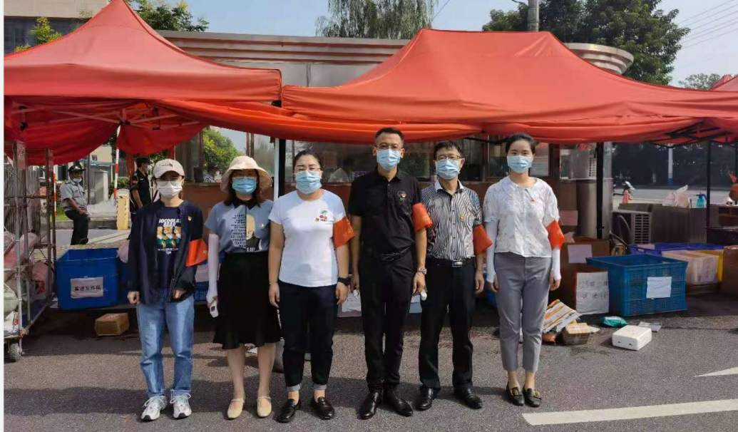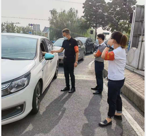 园区防疫是阻断疫情传播最基础、最关键的环节。由于入驻企业较多,当前智汇产业园门岗排查任务重,特别是早高峰时段,车辆人员集中,导致通行不畅。为积极投身园区疫情防控工作,国盛党支部主动联系园区,组织党员先锋队和青年突击队分别于8月26日和27日连续两天开展防疫志愿活动。早上八点,党员和青年志愿者们佩戴红袖章,为进入园区的人员测量体温并检查行程信息、讲解防疫知识,让群众从思想上重视、行动上配合,牢记勤洗手、戴口罩、常消毒的防疫要点。