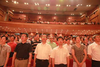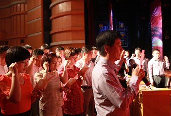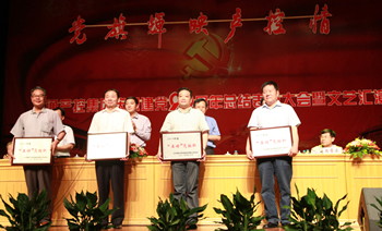 五年新跨越 歌声献给党 ----集团隆重举行“七一”总结表彰大会暨文艺汇演活动 6月30日下午,必赢3003no1线路检测中心召开“七一”纪念表彰大会暨大型文艺汇演活动。集团所属20家党组织、近千名党员参加活动,回顾党的光辉历程和“十一五”发展成果,以昂扬的歌声表达对党的热爱。市国资委李桂顺主任、市委组织部宋建宏处长应邀出席,集团党委副书记徐宪华主持大会。 大会表彰了2010年度“五好”党组织、优秀党员和优秀党务工作者,以及在“创先争优,实现跨越发展”暨庆祝建党90周年系列活动中涌现的先进集体和个人。全系统20多名新党员面向党旗进行入党宣誓,与会党员重温了誓词。 集团党委书记、董事长陈照东代表党委作报告。他指出,全市经济社会发展已进入“两个率先”的关键时期,产业现代化是市委确定的三大目标之一,必赢3003no1线路检测中心要成为产业现代化的生力军。他要求,围绕“十二五”期末实现总资产、销售额“双两百亿”的目标,各级党组织要引领科学发展,统筹谋划发展思路、发展战略,重点加 快洋口港新城、观音山新城和生物科技园的新兴产业建设和传统产业的优化升级;全体党员要争做先锋模范,以企为家,立足岗位,创新、敬业、奉献;通过建设学习型党组织,加强人才引进和培养,积极推进民主管理,加强反腐倡廉建设,以创先争优为主题创新党建工作内涵,围绕深化改革、加快发展、维护稳定的大局提供 坚强的政治和组织保障,为集团实现新的跨越保驾护航。 大会在雄壮的《国际歌》歌声中结束。会后,以“党旗辉映产控情”为主题的大型文艺汇演隆重上演,产控系统十家单位选送了精彩的歌舞、小品、诗朗诵等节目,赢得阵阵喝彩,向社会展现了产控人“齐心向党、追求跨越”的崭新风貌。