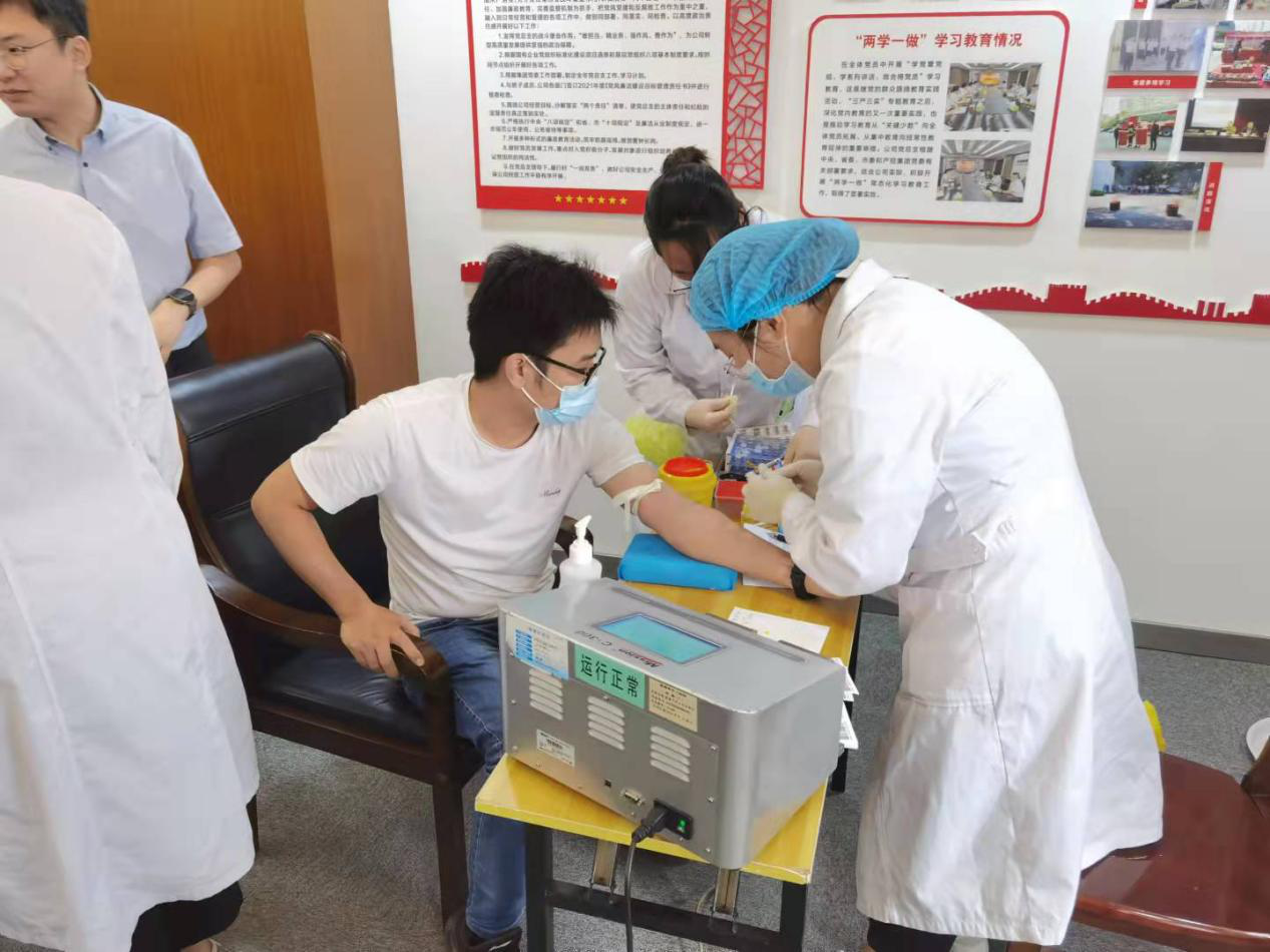 当天上午8时20分,集团系统党员干部职工就早早来到了集团献血现场,在工作人员的指引下,严格遵循疫情防控规定和献血程序,有条不紊地进行登记填表、血型化验、血液采集等流程。除集团组织献血以外,部分大型投资企业还在各自单位开设了献血点。