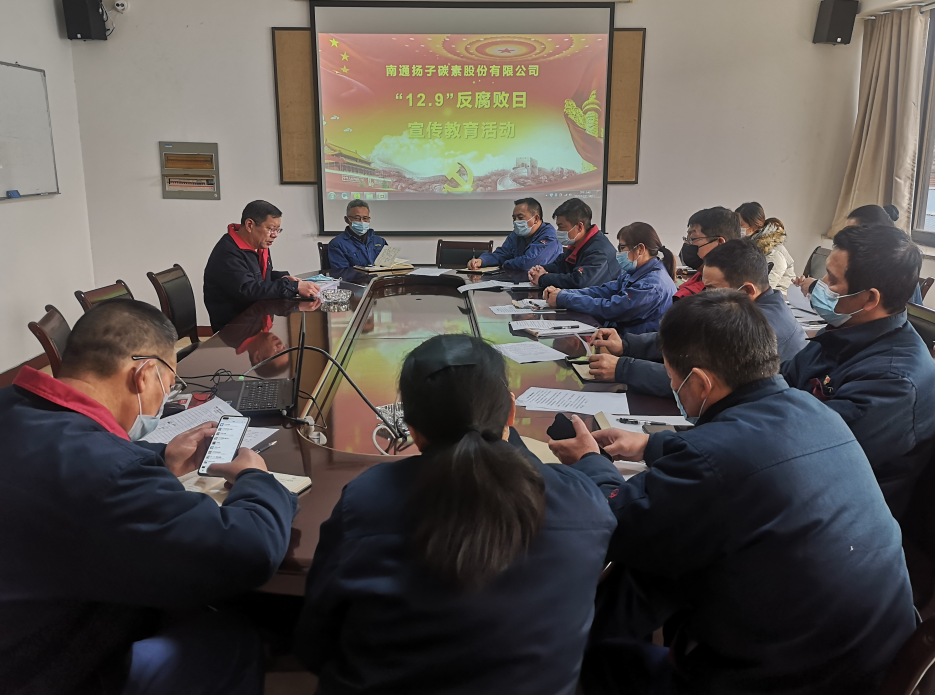为进一步贯彻落实党的十九届六中全会精神,切实加强以党员干部为重点的反腐倡廉教育,努力营造企业风清气正氛围,12月15日下午,扬子碳素纪委深入开展“12.9”国际反腐日教育活动,公司中层干部人员参加了此次活动。