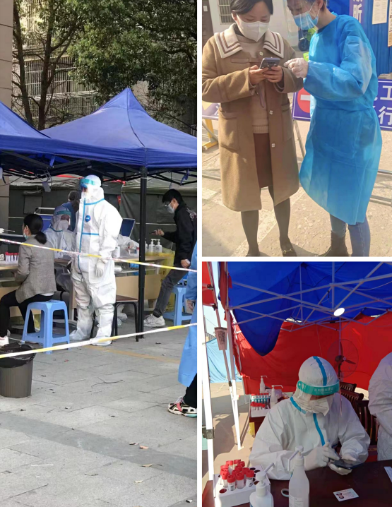 “您好,请配合我们测量体温”、“请大家带好口罩”、“请提前准备好身份证”······他们在现场协助查验双码、测量体温、维护现场秩序、对老人进行扫码帮助等,大庆社区、大南社区、濠东社区等均可见扬子碳素志愿者们忙碌的身影。