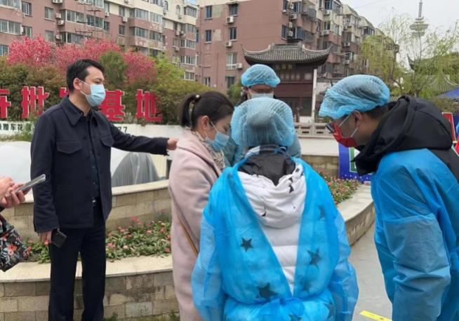 4月1日,抗疫突击队的战线扩展到铁心桥小游园和人民路布丁酒店2个检测点;4月5-6日,斗志高昂的抗疫突击队志愿者们已铺开到铁心桥小游园和人民路布丁酒店、老规划局3个检测点; 4月7-8日,志愿工作点调整为布丁酒店和跃龙桥小学2个检测点;4月9日,按照管控要求,全员就地转为志愿者,支援各社区防疫工作。 在此期间,我被志愿组成员的表现深深“䁔”到了:在小游园检测点,我看到了财务部平时不爱说话的王淑文拿着指示牌,嗓子已经喊得沙哑;我看到了资产部的韩璐、办公室的仲钱宇、项目部的江威呈在寒风中维持秩序、查看行程码和健康码。 在布丁酒店检测点,我看到了我们安全部程彧在内的数位突击队员脱下“大白”时身上的汗水;我看到了在其他工作人员身体突发不适时,赶来顶班至深夜的资产部孙强。