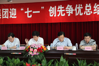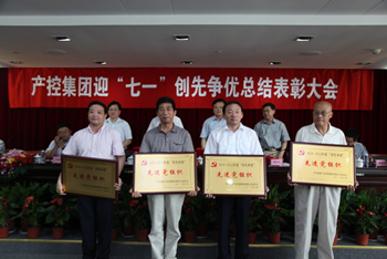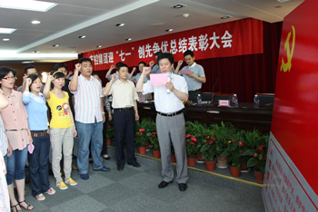 6月29日下午,南通产业控股集团8楼会议室党旗鲜艳,喜庆庄严,集团迎“七一”创先争优总结表彰大会在这里召开,来自集团公司党委所属15家党组织的党员代表和新党员计80多人参加会议。会议由集团党委副书记、副董事长徐宪华主持,党委副书记、总经理陆强新宣读了《关于表彰2010-2012年度创先争优先进党组织、优秀党员、优秀党务工作者的决定》,市委组织部企业干部处宋建宏处长及集团公司党委领导为受表彰的先进集体和先进个人颁奖。 集团党委副书记徐宪华带领集团公司今年发展的23名新党员举行了入党宣誓,与会党员庄严起立,举起右拳,重温了入党誓词。会上纺织染、南通科技、江山股份分别派出代表作为受表彰的先进集体、优秀党务工作者、优秀党员进行交流发言。 党委副书记、总经理陆强新代表集团公司党委作题为《不断深化创先争优,大力促进经济健康发展》的大会报告,他回顾了上半年集团公司及党委工作,并结合当前形势,部署了下一阶段的工作,要求各基层党组织紧扣中心,服务大局,加强与改进党组织建设,将集团公司的工作要求落到实处,确保完成好年度各项工作。 会议在激昂的《国际歌》歌声中结束。