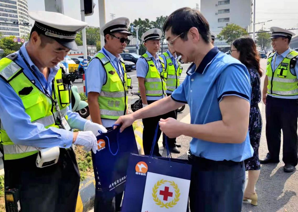 8月12日上午,精华制药集团和南通市红十字会相关负责同志来到南通市公安局交警支队四大队及四大队所辖两个路段,慰问高温下坚守岗位的一线交警。精华制药集团监事会主席薛红卫和南通市红十字会党组成员朱建新将季德胜健肤皂、洁面乳及防疫药茶等防暑防疫物资送到路面执勤的交警手中,向他们表达了由衷的敬意。
