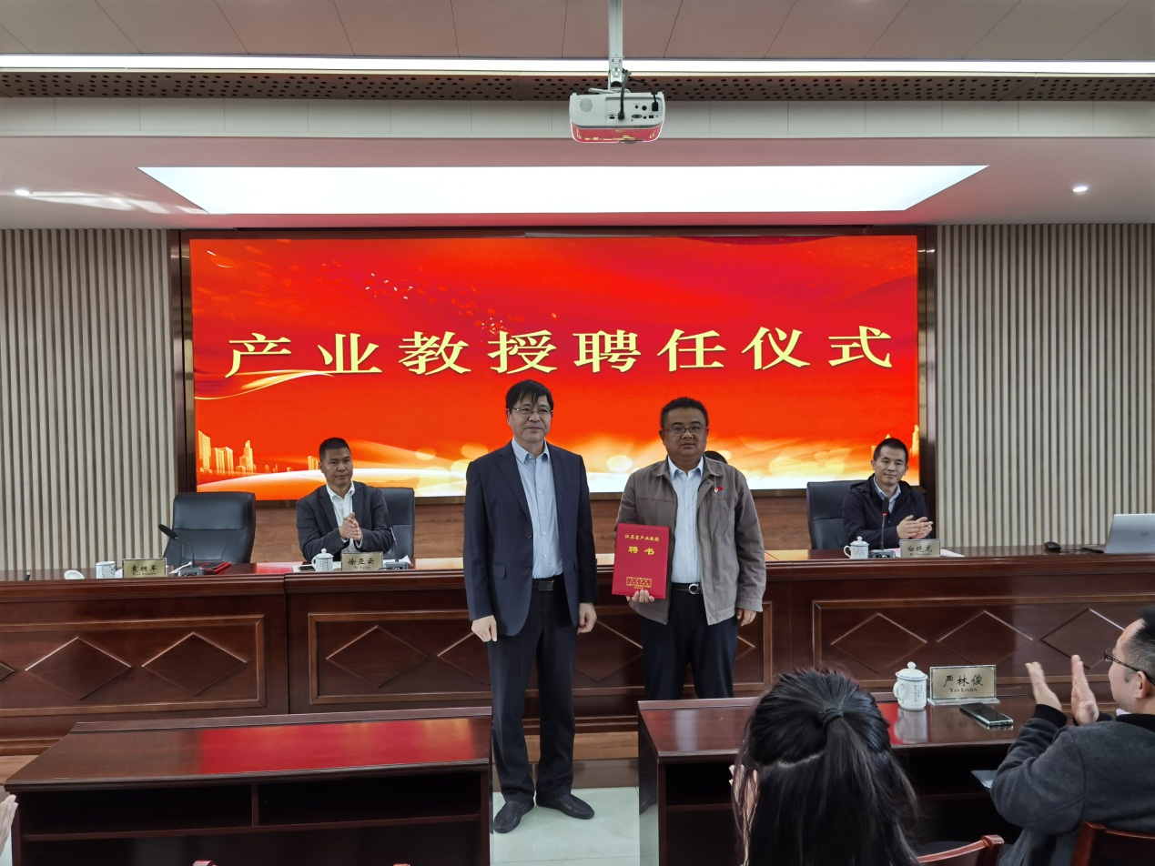 随后,南通科技职业学院环境与生物工程学院党总支书记白晓龙主持了江苏省产业教授聘任仪式。南通科技职业学院副校长周昶向该校江苏省产业教授、江苏森萱医药股份有限公司总经理袁拥军颁发了产业教授聘任证书。袁拥军表示,对于此项荣誉称号,他深感荣幸。今后将以此为契机,进一步深化产教融合,努力为企业和学校更好的服务。