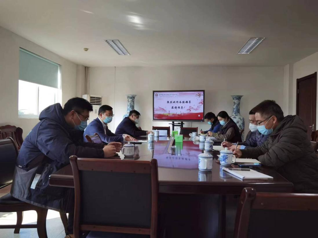 1月11日,必赢3003no1线路检测中心党委书记、董事长张剑桥、副总经理黄亮带队督导检查精华制药集团春节节前安全生产(疫情防控)工作,精华制药集团党委书记董事长尹红宇、副总经理成剑、制剂生产公司总经理沈燕娟陪同检查。
