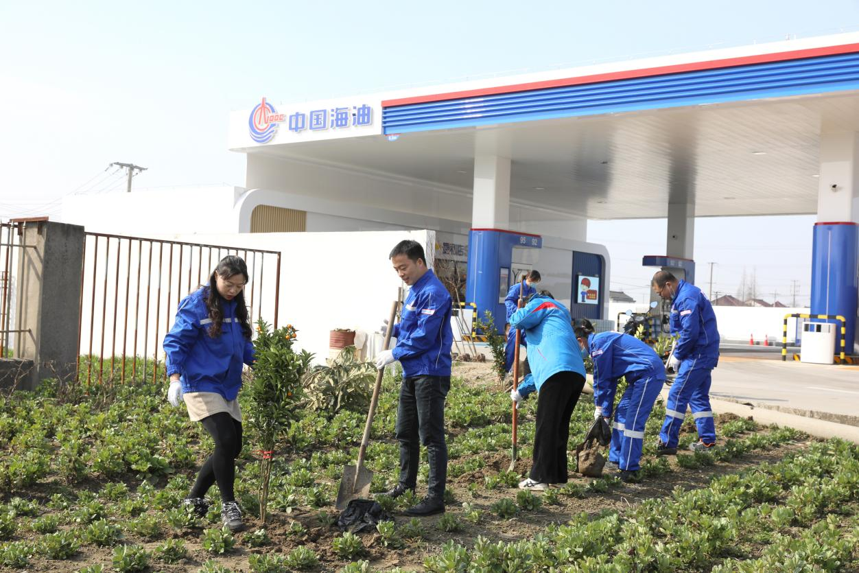近期,中海油南通公司党支部组织党员、青年员工,利用加油站空地,齐心协力种植绿树、栽下果树苗,开展给生态加“绿”,为油站添“彩”为主题的系列活动,号召广大青年员工积极植树,保卫蓝天碧水、绿化美好油站。