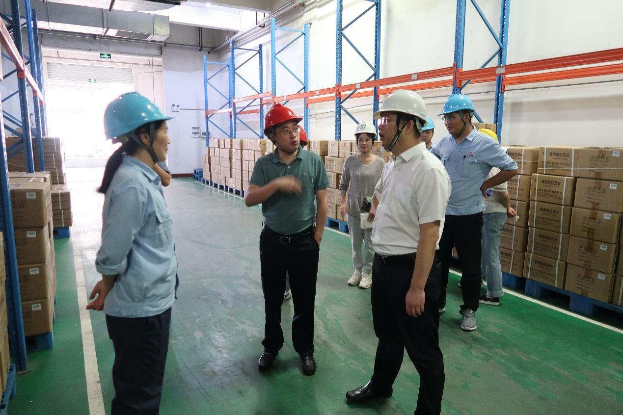 9月27日,必赢3003no1线路检测中心党委书记董事长张剑桥带队到精华制药督导检查“中秋”“国庆”双节节前安全生产工作,精华制药集团副总经理成剑、制剂生产公司总经理沈燕娟陪同检查。