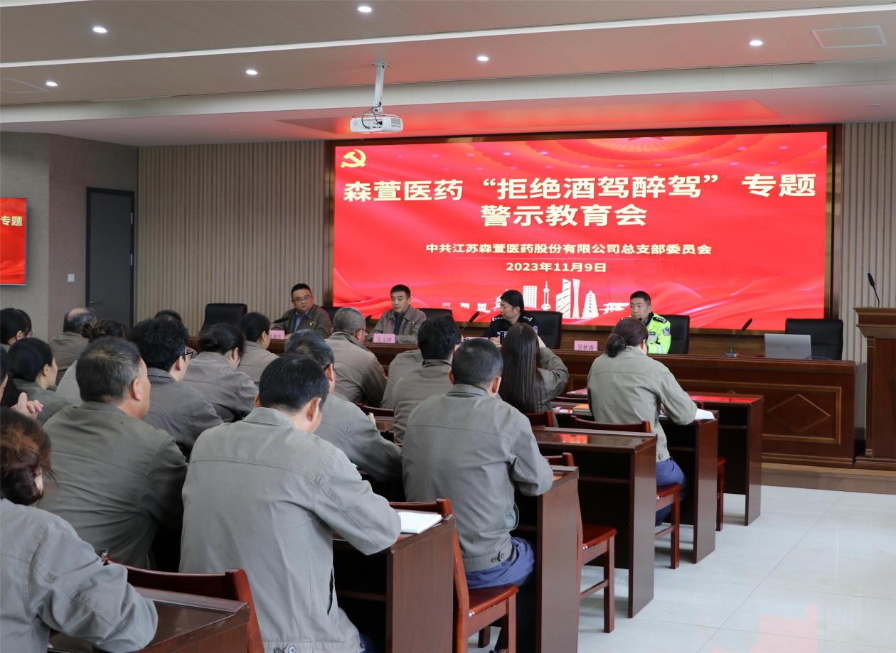 为深入落实全面从严治党要求,加强杜绝酒驾醉驾宣传教育,进一步增强公司员工交通安全法治观念,筑牢纪律规矩意识和底线思维,11月9日,森萱医药开展了2023年度第二期、总第九期“森萱小讲坛”—交通法规知识培训暨“拒绝酒驾醉驾”专题警示教育活动。精华集团常务副总经理、森萱医药党总支书记、董事长吴玉祥、森萱医药总经理袁拥军、公司全体党员、各职能部门管理人员及生产车间班组长以上管理人员近百人共同参与了本次活动。