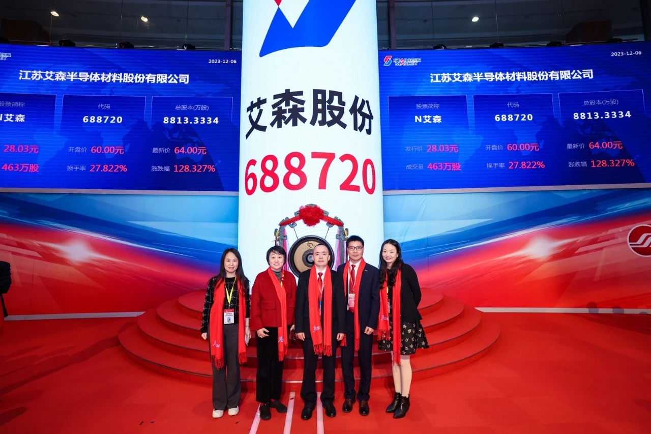 12月6日,南通市产业投资母基金合作基金所投企业江苏艾森半导体材料股份有限公司(股票代码688720,以下简称:艾森股份)成功在上海证券交易所科创板首发上市。截至目前,南通市产业投资母基金合作基金投资企业后上市累计达73个。