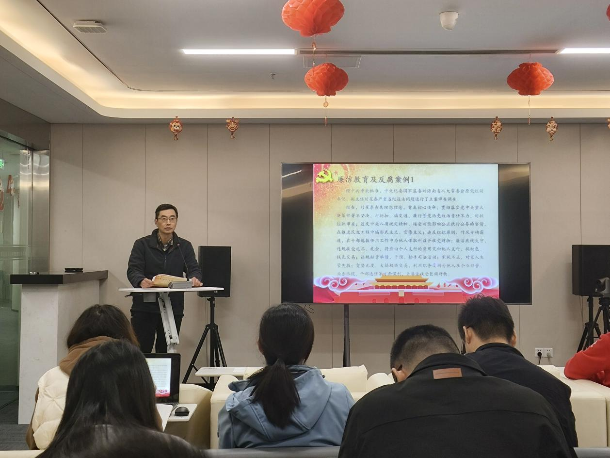 南通投管党支部书记姚志新围绕强化“四种意识”、坚持“五慎原则”、严守“六大纪律”,通过分析最新反腐警示案例,提醒全体职工警钟长鸣,自觉筑牢反腐倡廉的精神堡垒。会上,结合普法案例学习,大家一起开展了《中华人民共和国宪法》《中华人民共和国民法典》《中华人民共和国保守国家秘密法》等相关法规学习;并进行了人民防线与总体国家安全观教育,观看了国家安全微短剧《皓月》。 通过开展“12·9”国际反腐败日主题活动及普法教育,让“知敬畏、存戒惧、守底线”的准则根植于职工党员心田,会后职工党员纷纷表示,从我做起,着力营造崇廉尚廉的良好风尚,让清廉之风吹进每个角落。