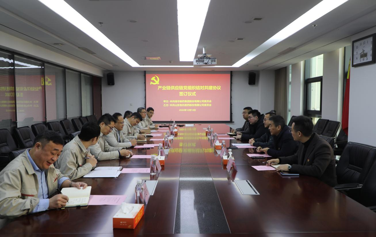 为进一步学习贯彻党的二十届三中全会精神,创新党建工作,以“党建内链”驱动“产业外链”,不断激发基层党建活力,形成优势互补、资源共享,共同提高、合作共赢的党建工作格局,经前期沟通,受鲁抗医药邀请,12月14日,精华制药集团股份有限公司党委书记、董事长尹红宇、集团副董事长、江苏森萱医药股份有限公司董事长吴玉祥等一行5人赴山东鲁抗医药股份有限公司开展党建共建活动。