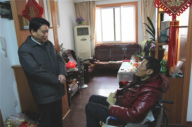 杜永朝一行来到虹桥新村,看望慰问了江山股份公司困难职工李进全,并送上了慰问金及油、米、水果等慰问品,杜永朝详细询问了李进全的生活起居、身体状况和家庭情况,并叮嘱他要保重身体,鼓励他要有信心战胜眼前困难,努力把生活过得越来越好。他要求江山股份公司工会要把困难群众的冷暖挂在心上,努力帮助困难职工渡过难关,让困难职工共享经济社会发展成果,早日过上幸福美好的生活。